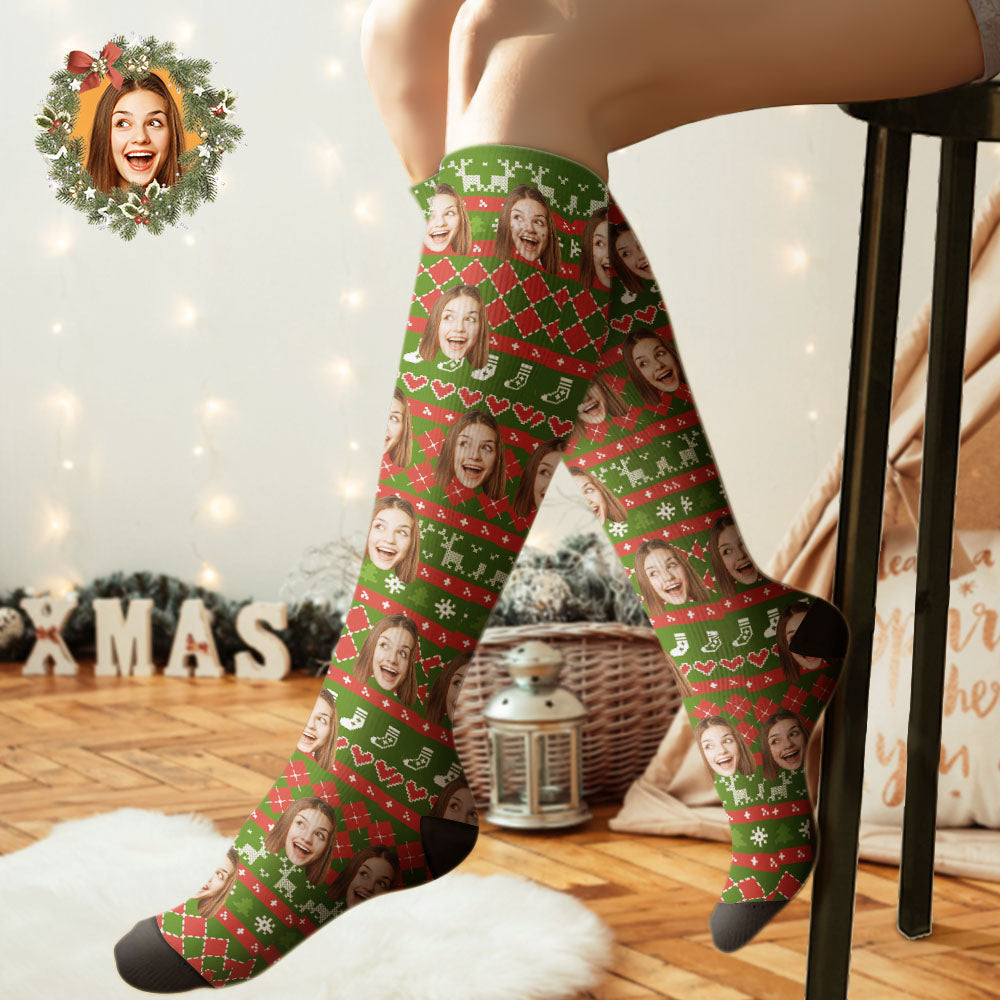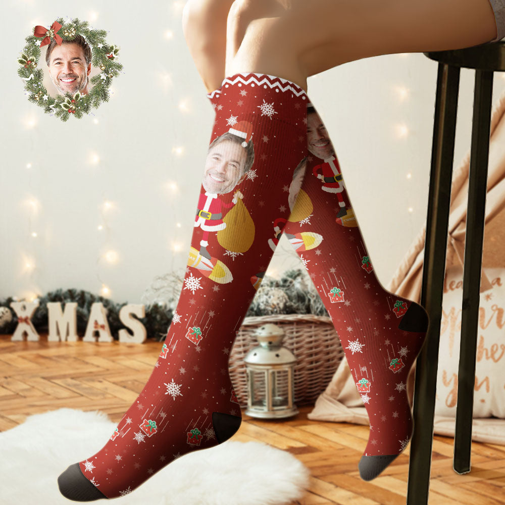 Aangepaste Kniekousen Gepersonaliseerde Gezichtssokken Vrolijk Kerstfeest