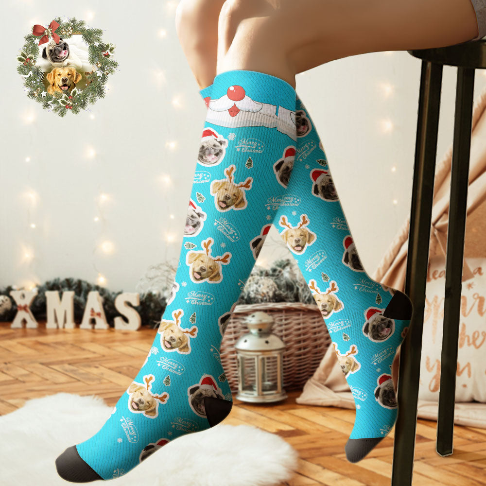 Aangepaste Kniekousen Gepersonaliseerde Gezichtssokken Merry Christmas Dog Face Voor Pet Lover