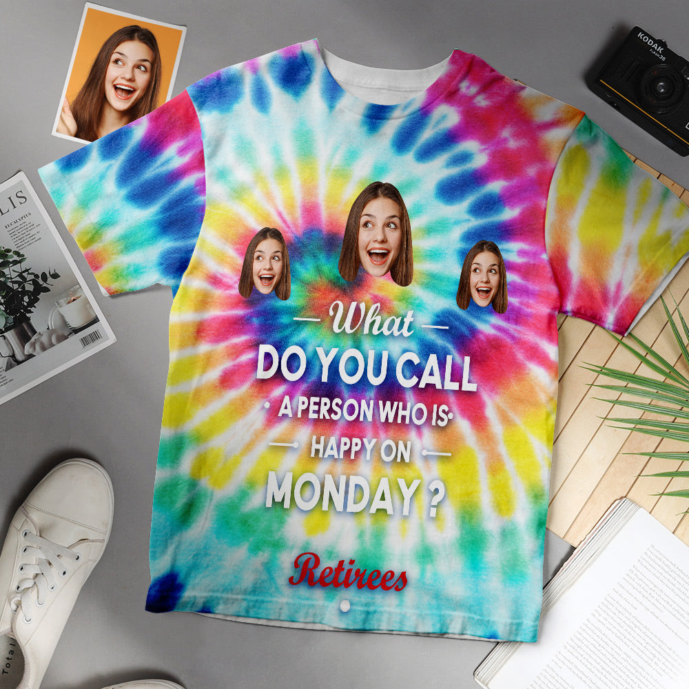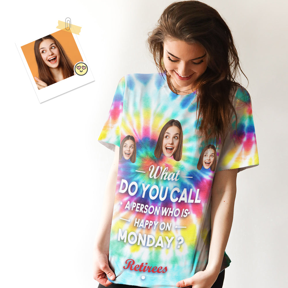 Custom Face Dames T-shirt Persoon Gelukkig Op Maandag Pensioen Cadeau