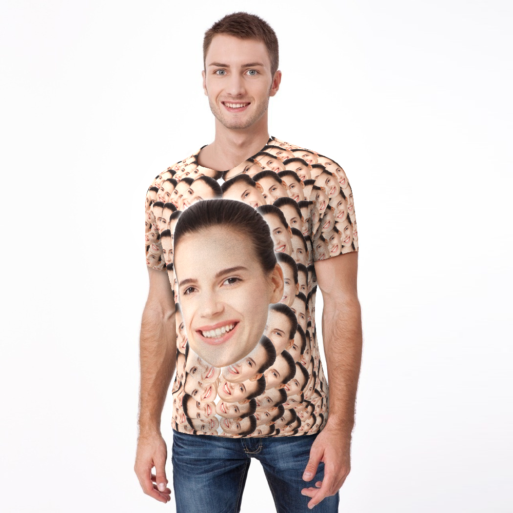Aangepaste Mijn Gezicht Gepersonaliseerde T-shirt Grappige Man Foto Overal Print Tee