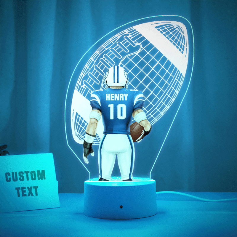 Aangepaste American Football-speler Gepersonaliseerde Naam En Nummer 3d Led-licht Multi Color Base