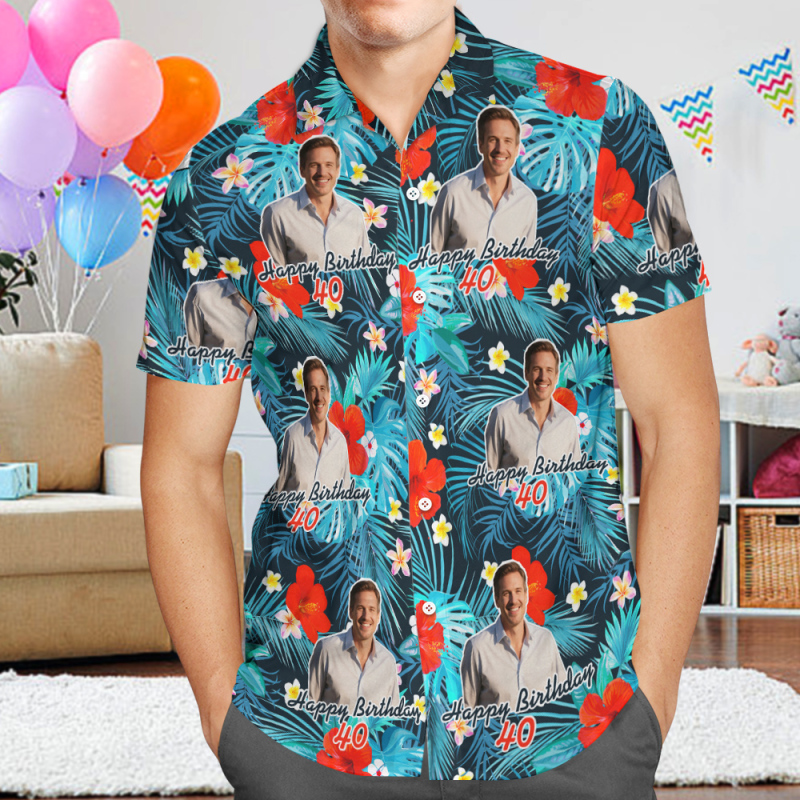 Aangepast Lichaams- En Gezichtsverjaardagsshirt Met Hawaiiaanse Print, Aangepaste Datum En Naam, Bierbloem En Palmboomshirt, 5 Stijlen