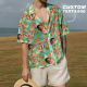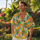 Dit Hawaiiaanse overhemd heeft een print, een knoopsluiting en korte mouwen.