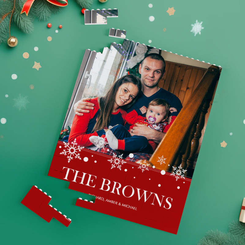 Aangepaste Bouwsteenpuzzel Verticaal Bouwen Fotostenen Mooie Sneeuwvlokken