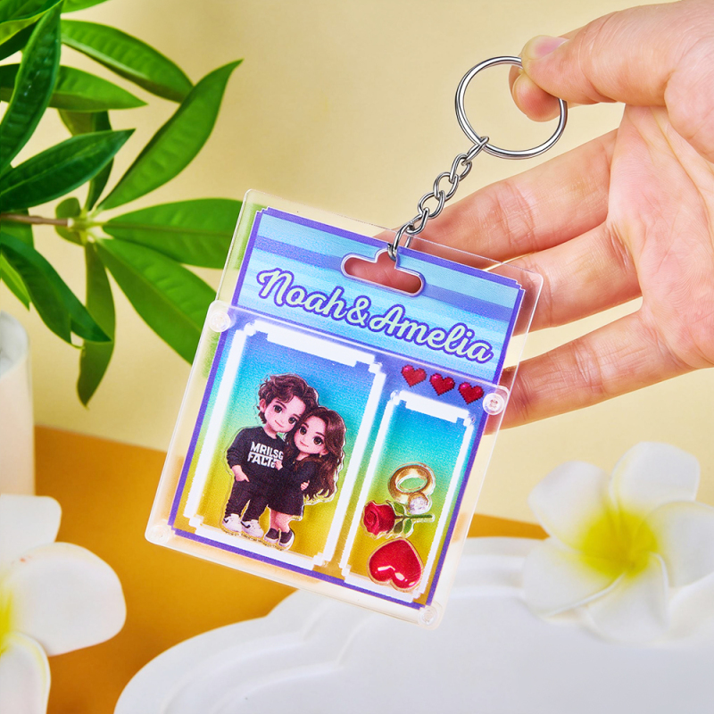 Gepersonaliseerde Cartoon Sleutelhanger, 3d Acryl Cartoon Sleutelhanger, Fotohanger Voor Tas, Uniek Aandenken, Cadeau Voor Stel, Valentijnsdagcadeau