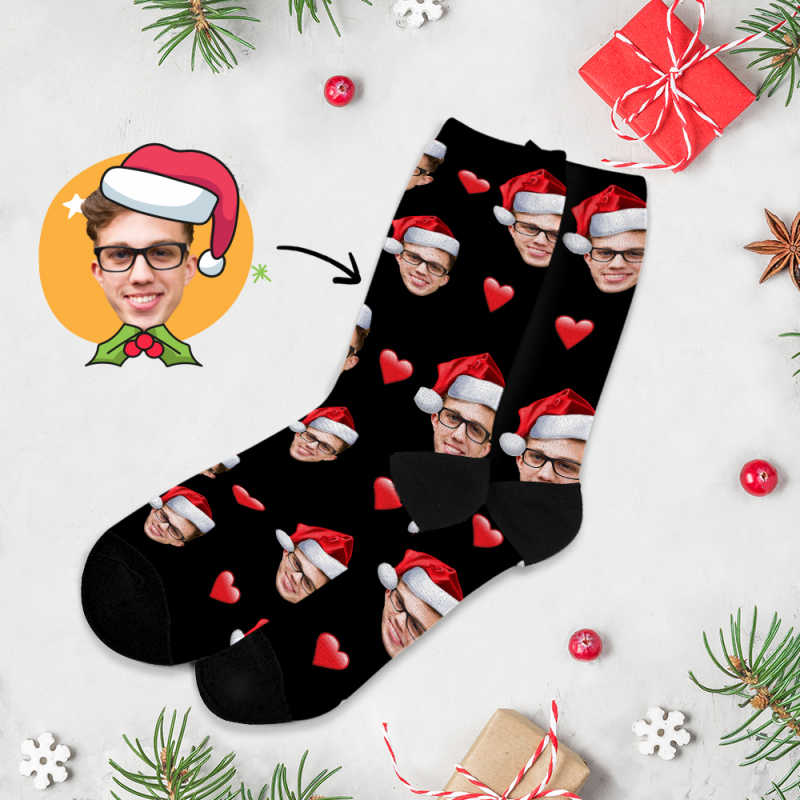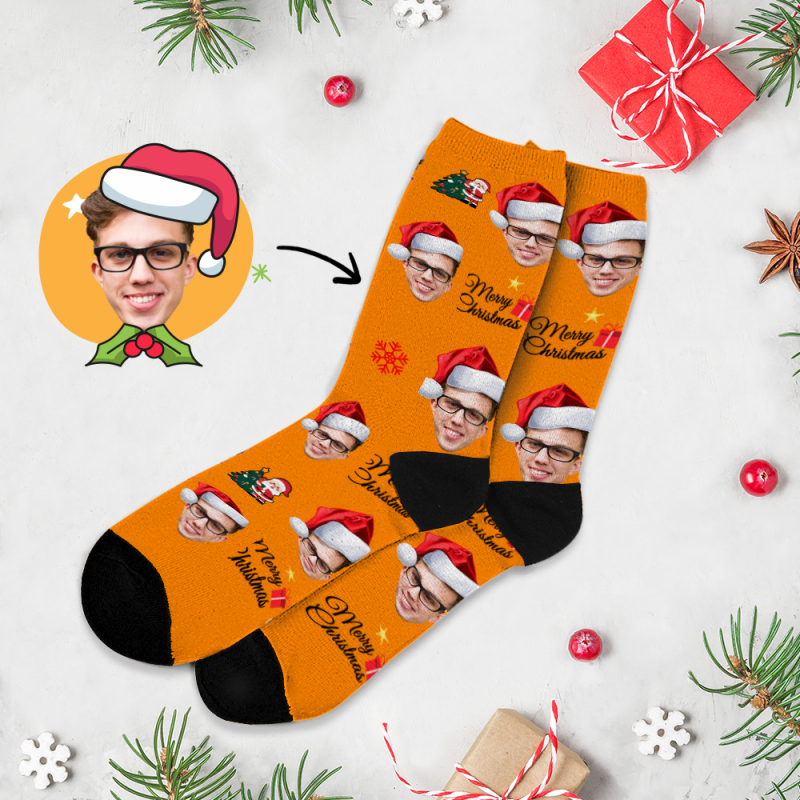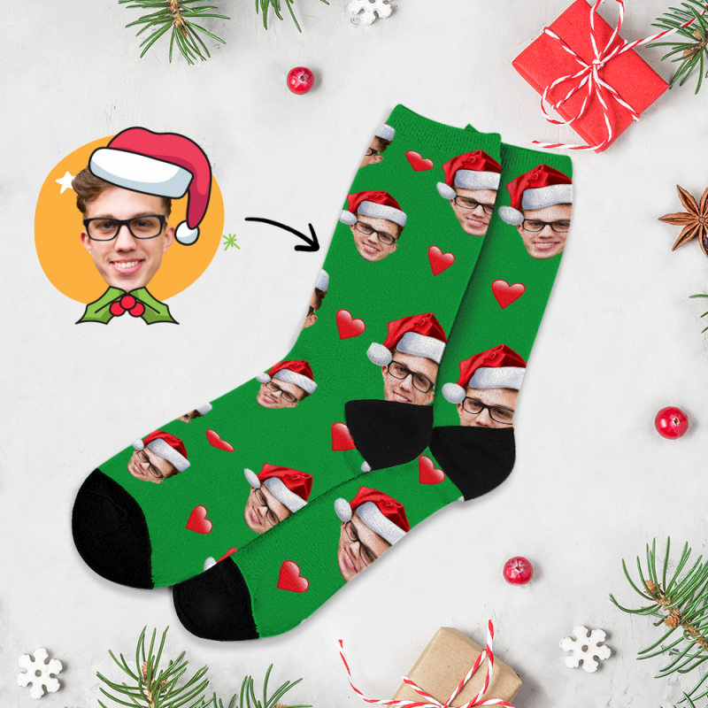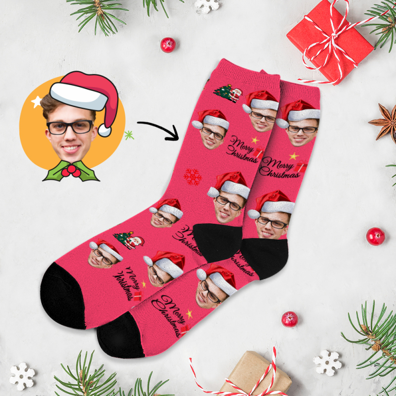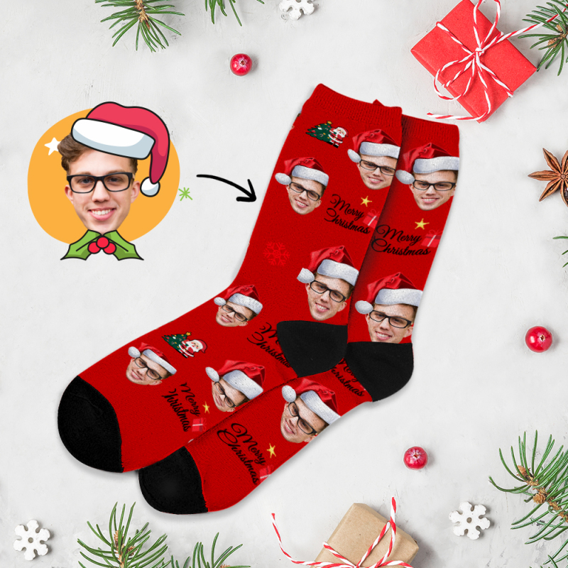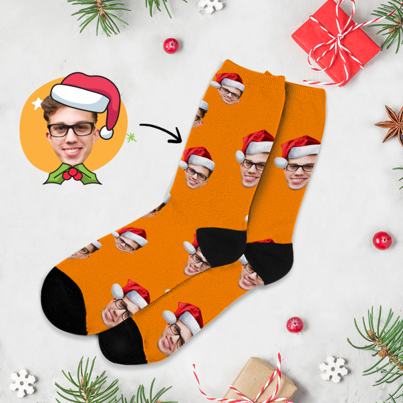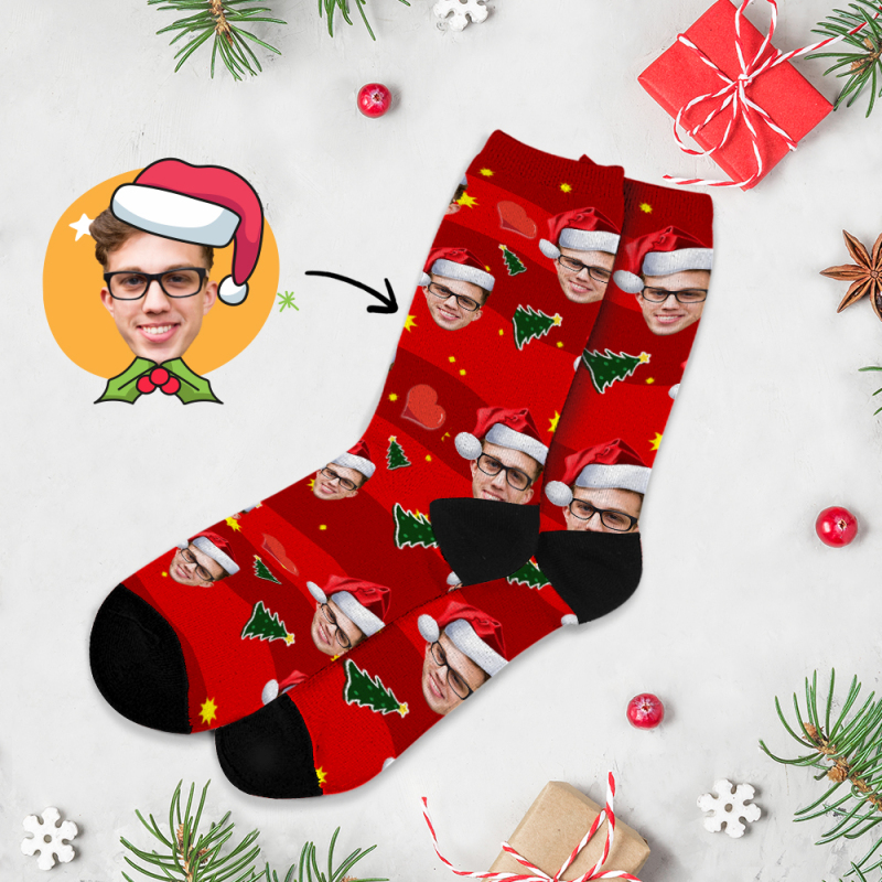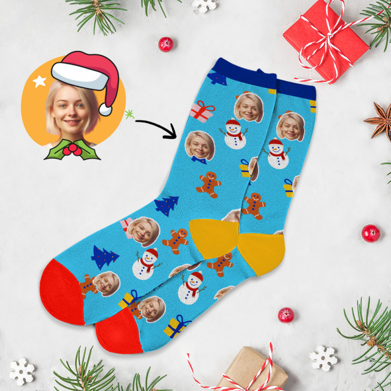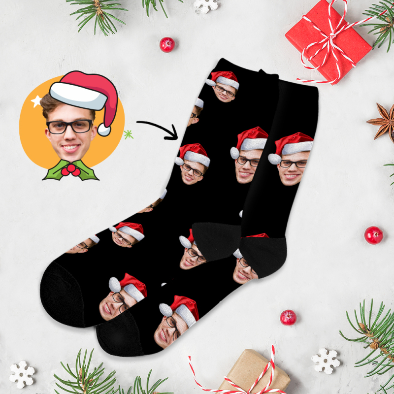Aangepaste Kerst Volledig Gezicht Foto Bedrukte Sokken Gepersonaliseerde Grappige Aangepaste Ontwerpen Beste Cadeau-idee Voor Kerstmis