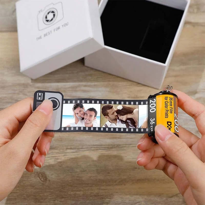 Aangepaste kleurrijke camerarol sleutelhanger - paar