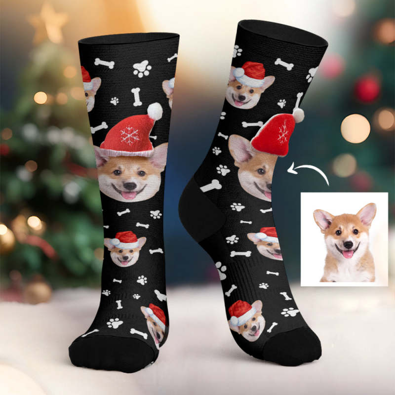 Aangepaste Hondengezicht Sokken Gepersonaliseerde 3d Kerstmuts Sokken Vrolijk Kerstfeest