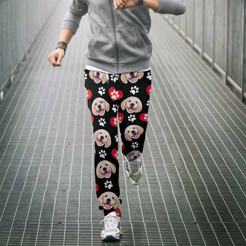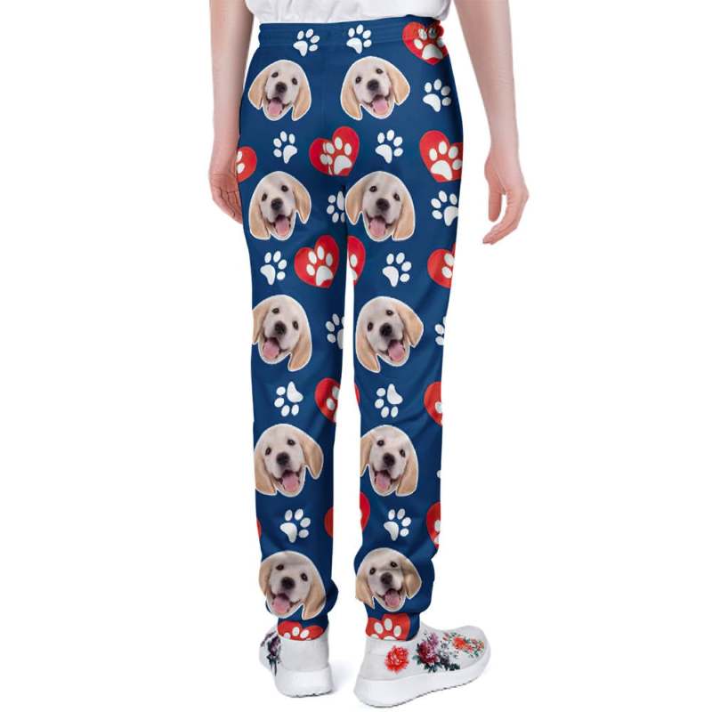 Aangepaste Joggingbroek Met Hondengezicht, Unisex Joggingbroek Met Hartpatroon Paw
