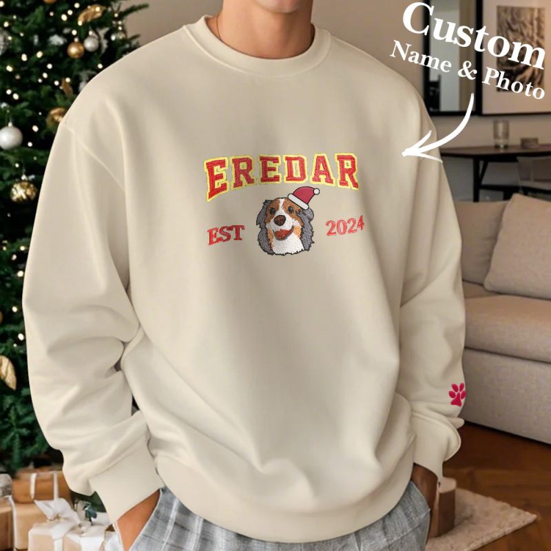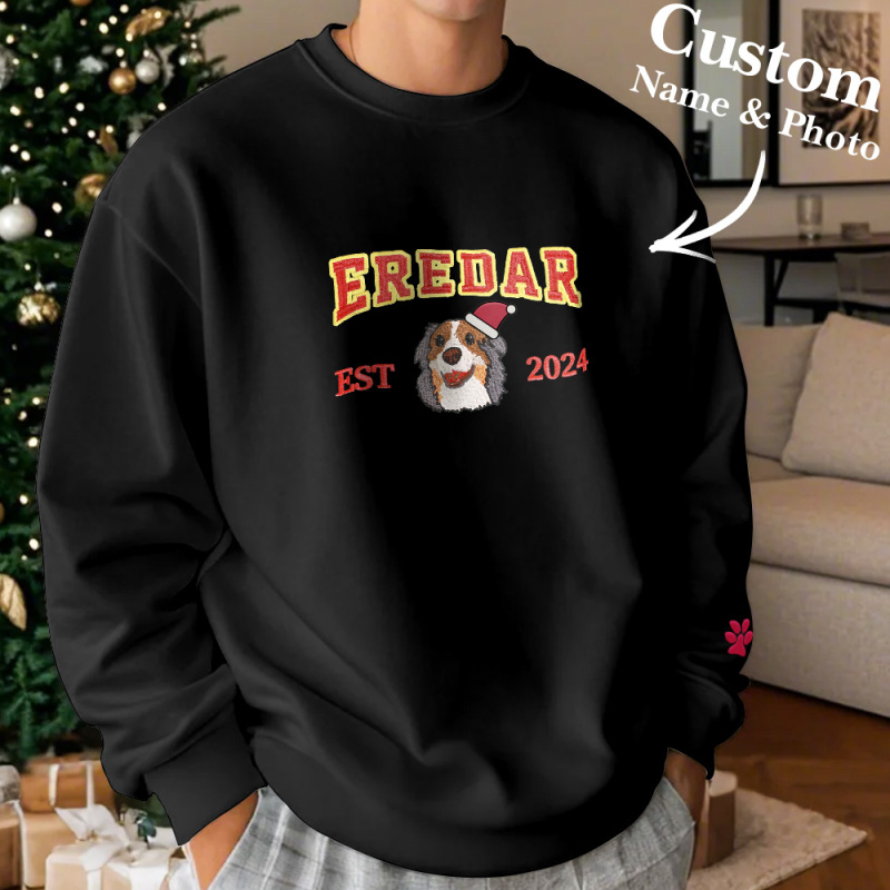 Maak kennis met ons op maat gemaakte sweatshirt met huisdierfoto en borduureffect!