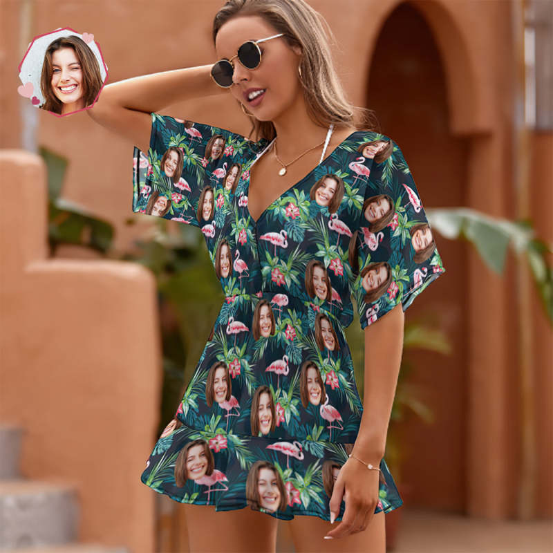 Custom Face Beach Wrap Hawaiian Style Flamingo Cover Ups