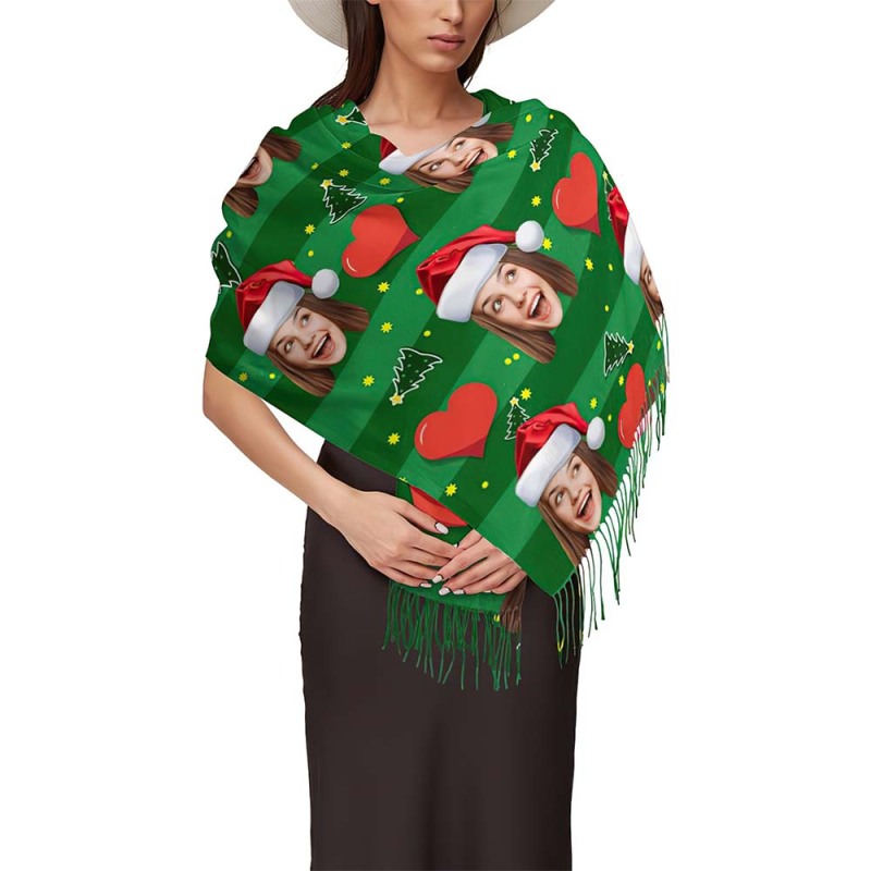 Aangepaste Gezichtskerstsjaal Gepersonaliseerd Ontwerp Kersthart