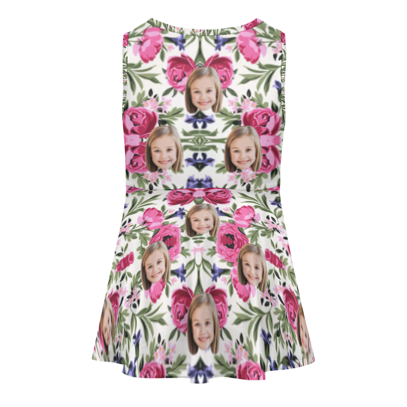 Aangepaste Gezichtsjurk Gepersonaliseerde Zomer Hawaiiaanse Meisjesjurken Roze Rozen