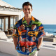 Aangepast Gezicht Hawaiiaans Shirt Klassieke Bloemenautofoto Hawaiiaans Shirt Cadeau Voor Hem