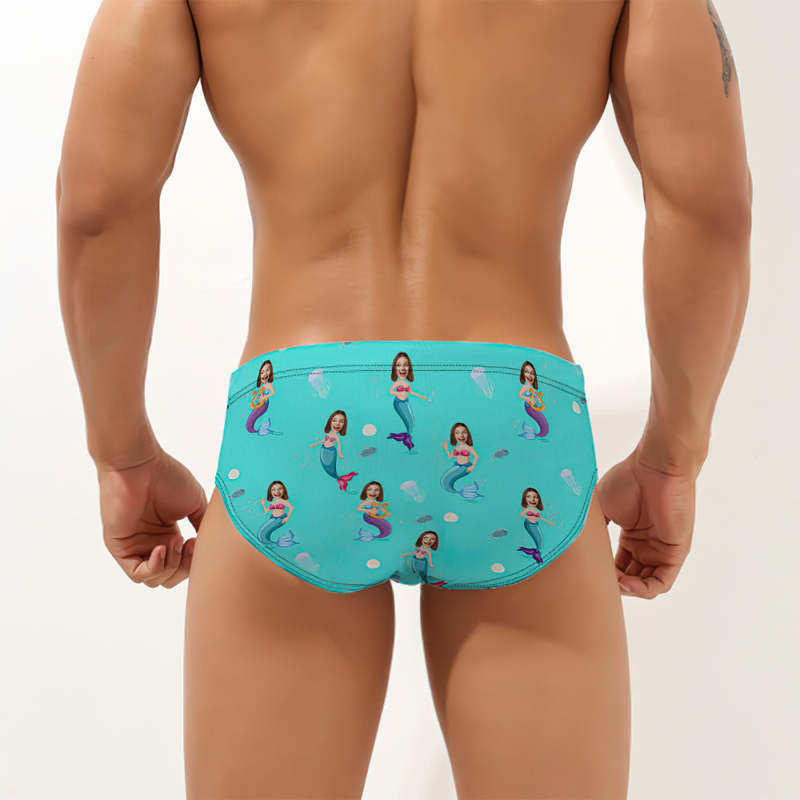 Custom Face Hawaiian Style Heren Zwembroek Zeemeerminnen Driehoek Zwemslips