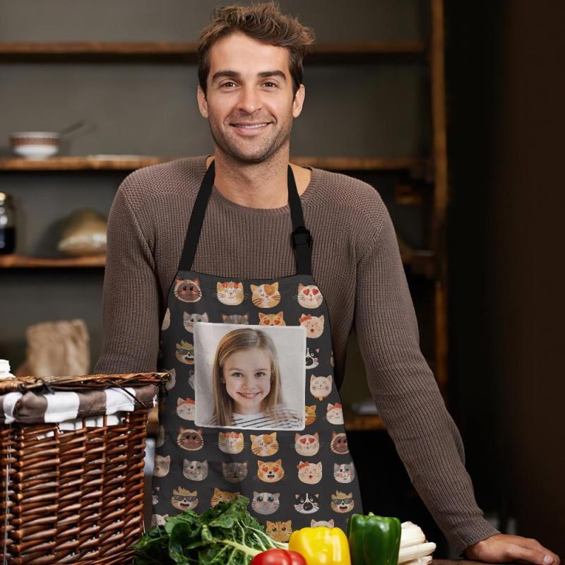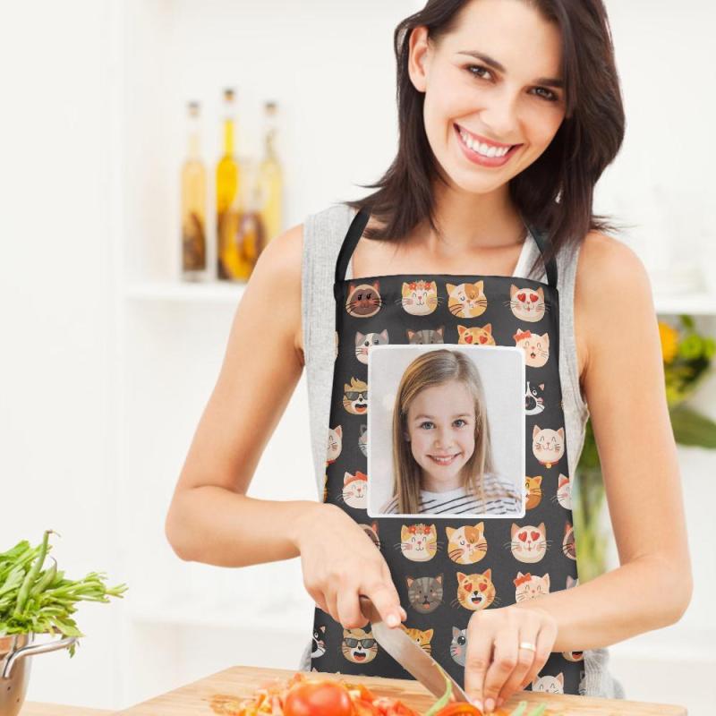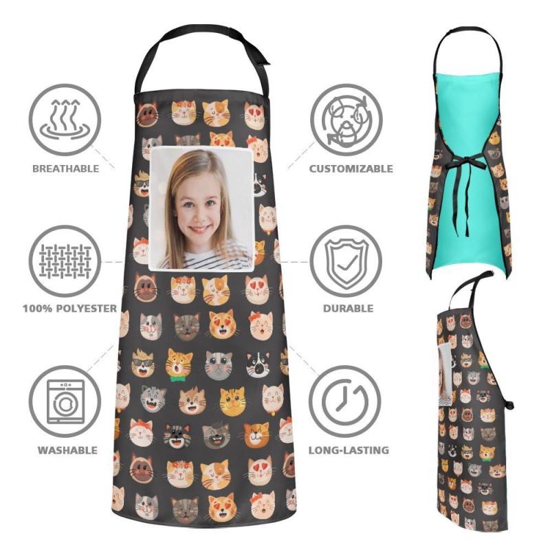 Aangepaste Gezicht Keukenschort Kitten Cartoon Patroon Schort Met All-Over Print