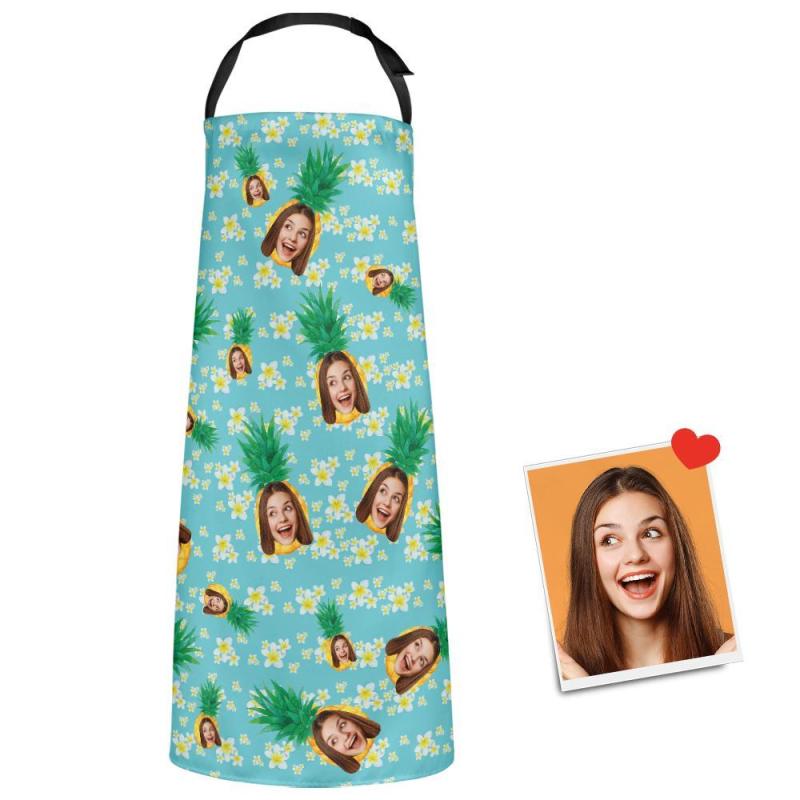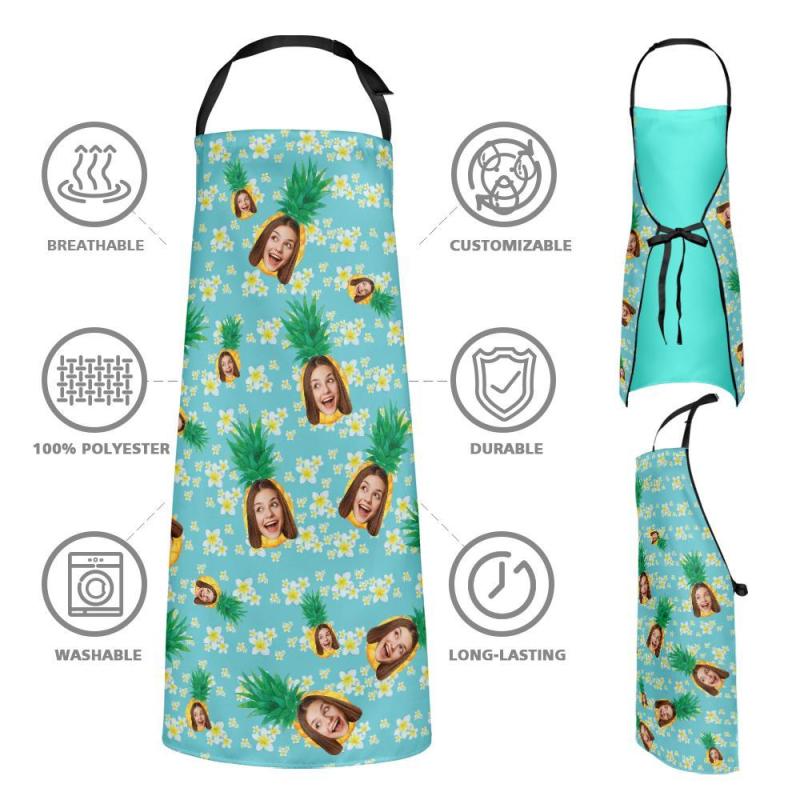 Aangepaste Gezicht Keukenschort Ananas Patroon Keukenschort Met All-Over Print Bloemen