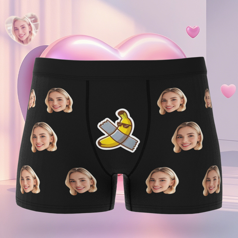 Aangepaste Gezichtsboxer Voor Heren Uw Banaan Voor Vriendjesstijl Ondergoed Cautom Face Teal Boxer Cadeau