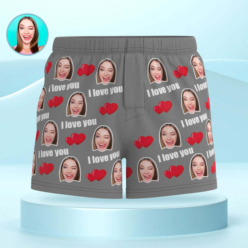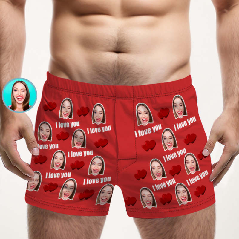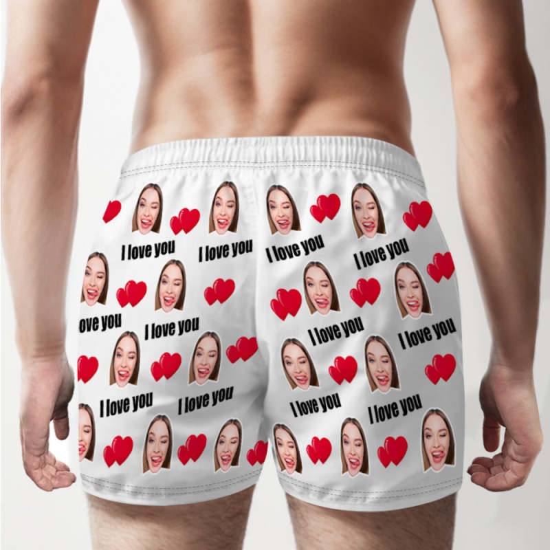 Aangepaste Gezicht Veelkleurige I Love You Boxershorts Gepersonaliseerde Foto Ondergoed Cadeau Voor Hem
