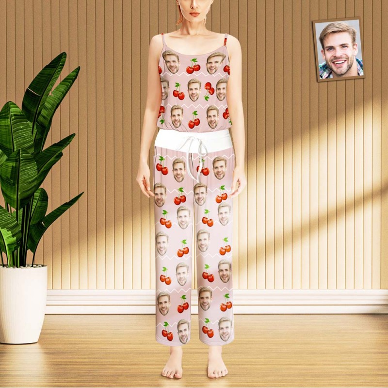 Custom Face Pyjama Kersenroze Nachtkleding Voor Dames