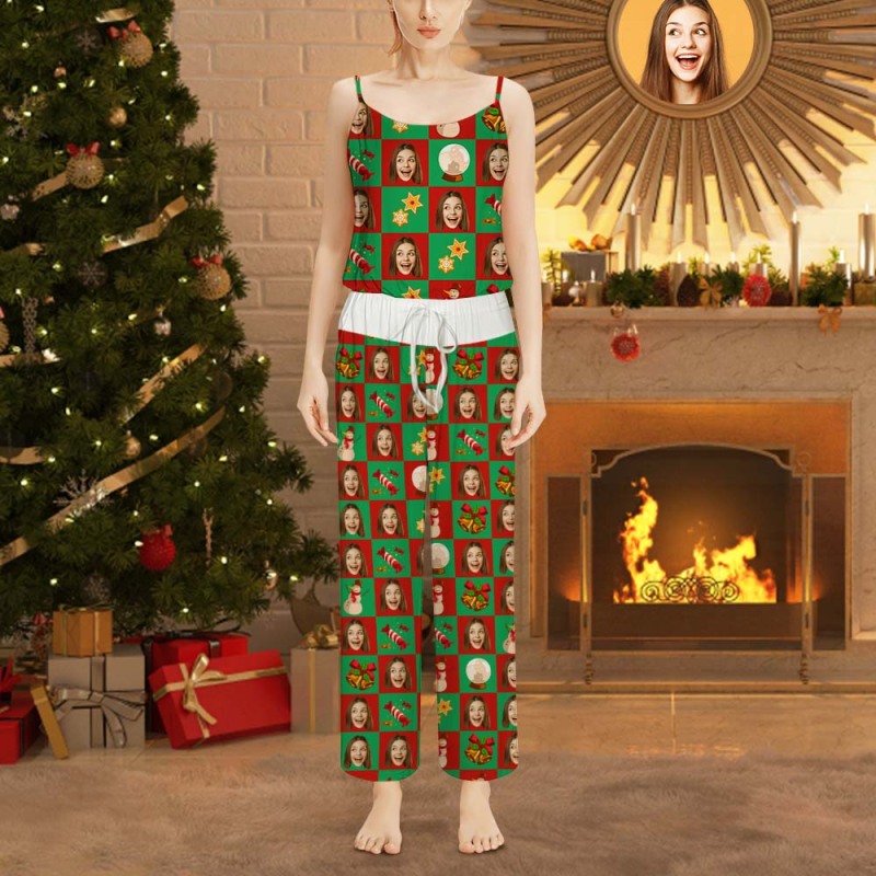 Custom Face Pyjama Dames Kerst Nachtkleding Plaid