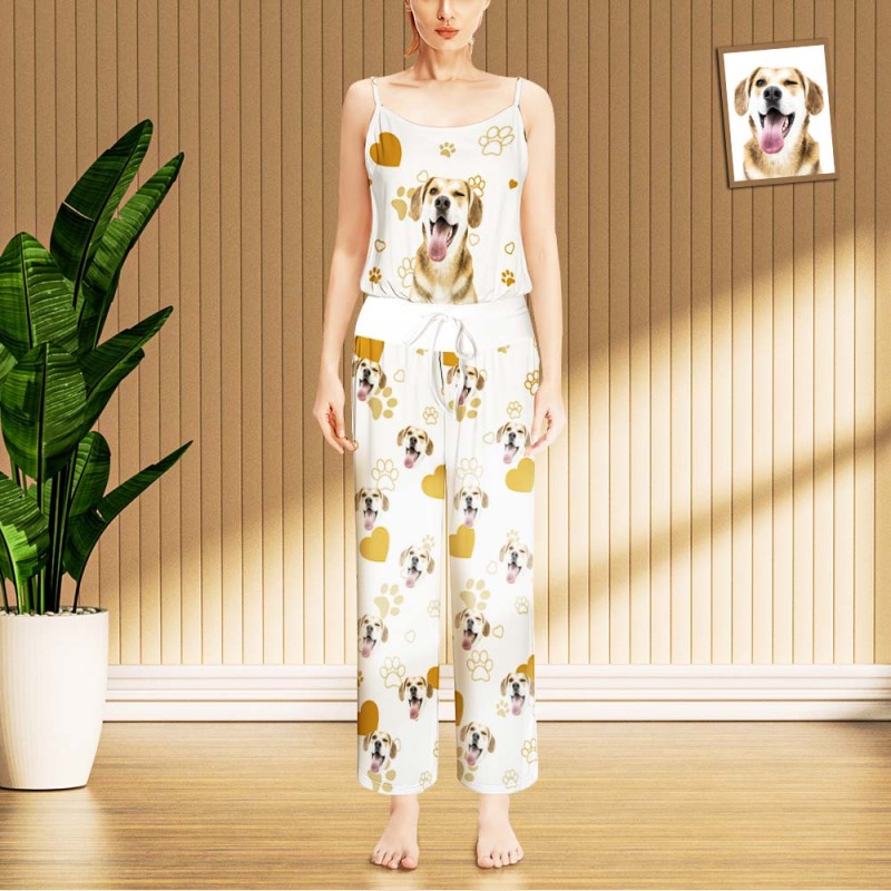 Aangepaste Gezichtspyjama Dames Pootafdrukken Hart Nachtkleding