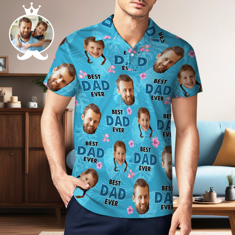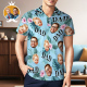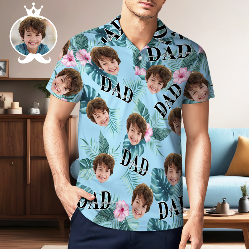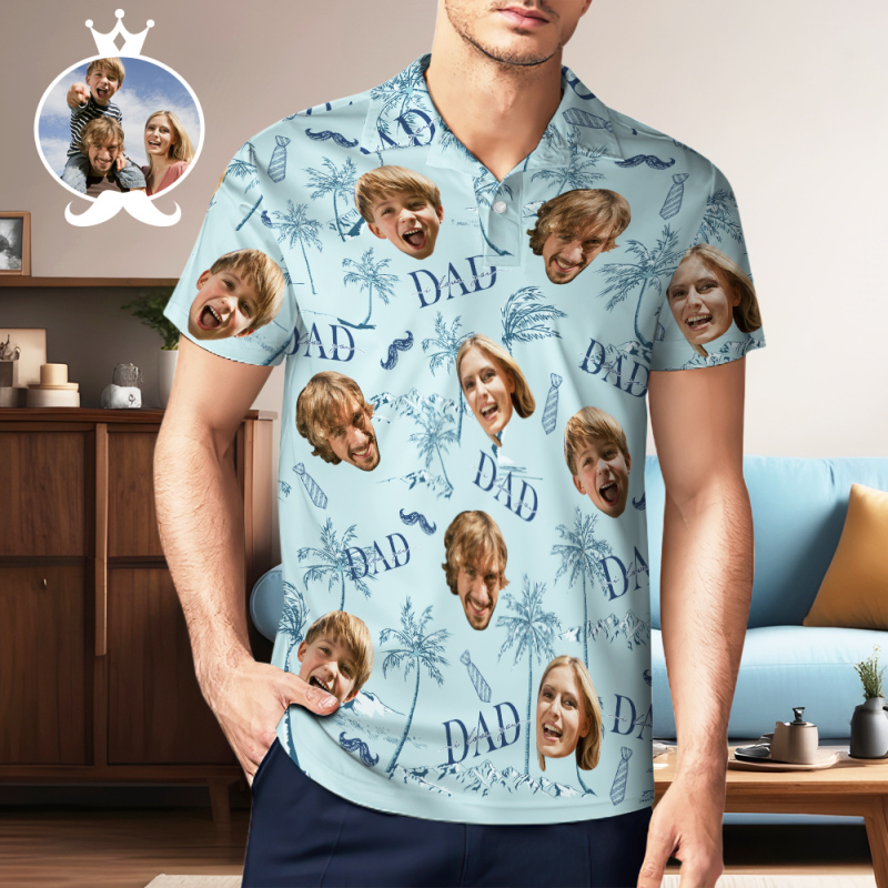 Custom Face Polo Hawaiian Blue Golf Polo Shirt Dad Beard Heren Polo Shirt Vaderdag Cadeau