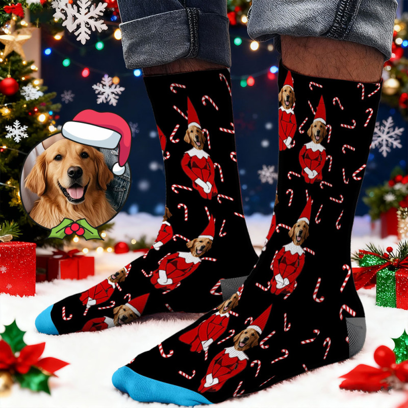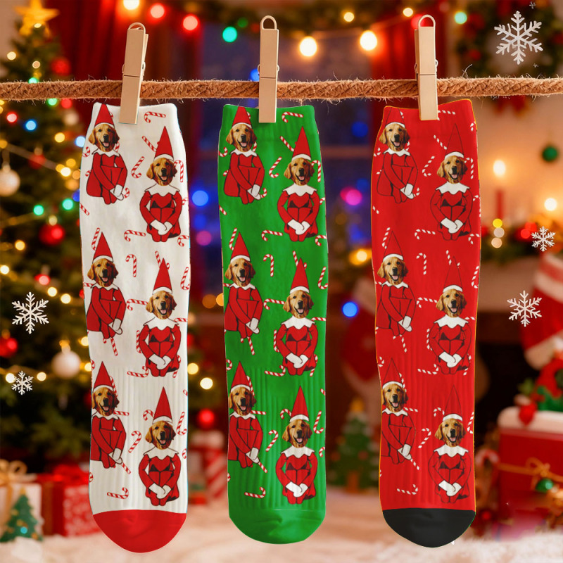 Sokken Met Een Bedrukt Gezicht, Kerstcadeau, Grappige Sokken Met Een Huisdiergezicht, Gepersonaliseerde Ontwerpen, Het Beste Idee Voor Een Kerstcadeau.