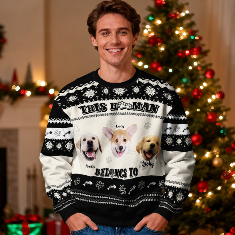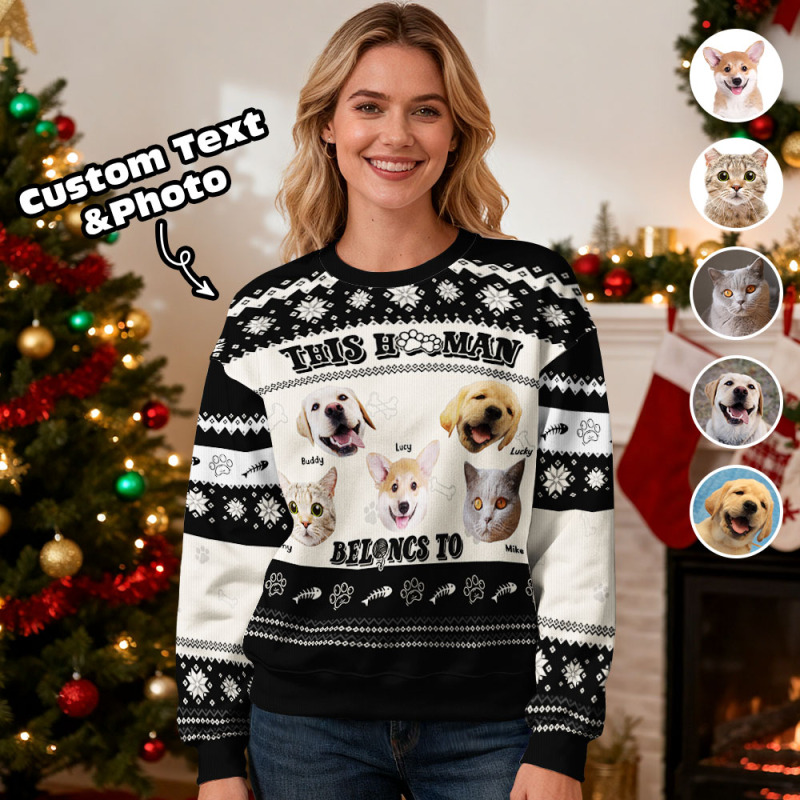 Gepersonaliseerde Hoodie Met Ronde Hals En Foto, Zwart, Kerstcadeau Voor Familie, Schattige Trui Met Huisdiergezicht, Kerst-leds, Unisex Hoodies
