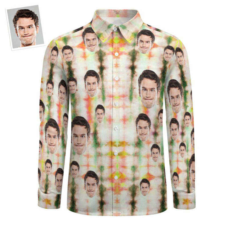 Aangepaste Gezicht Naadloze Groene Streep Tie-dye All-over Print Groot Shirt Met Lange Mouwen - SokkenFoto