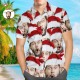 Aangepaste Gezicht Shirt Gepersonaliseerde Foto Mannen Hawaiiaanse Shirt Kerstcadeau - Santa Face Mash