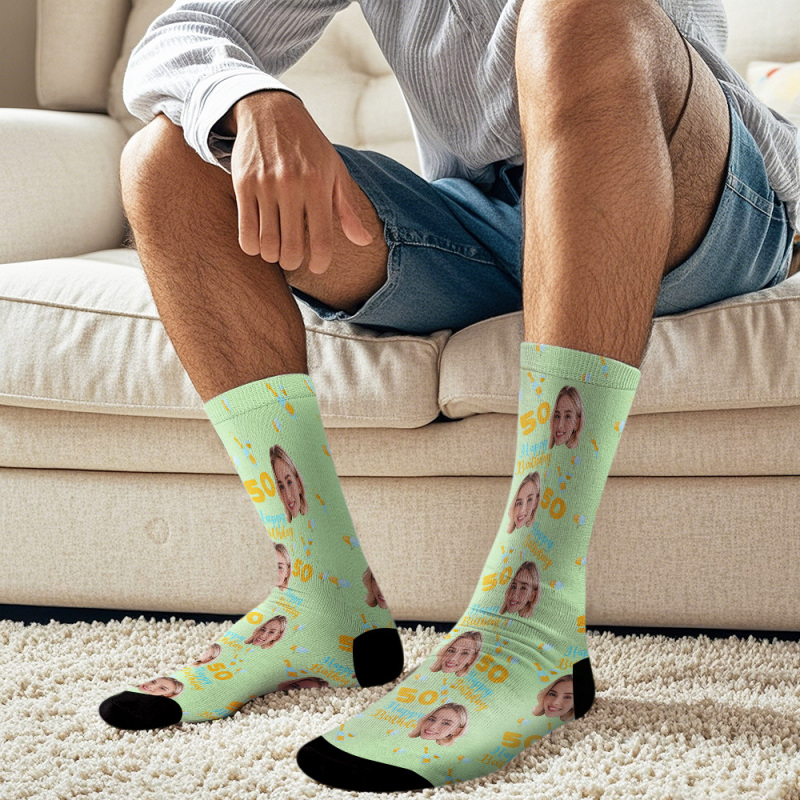 Aangepaste Gezichtssokken Leeftijd En Foto's Sokken Gelukkige Verjaardag Gezichtssokken Cadeau