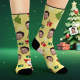 Aangepaste Gezichtssokken Gepersonaliseerde Foto Gele Sokken Schattige Kerstman