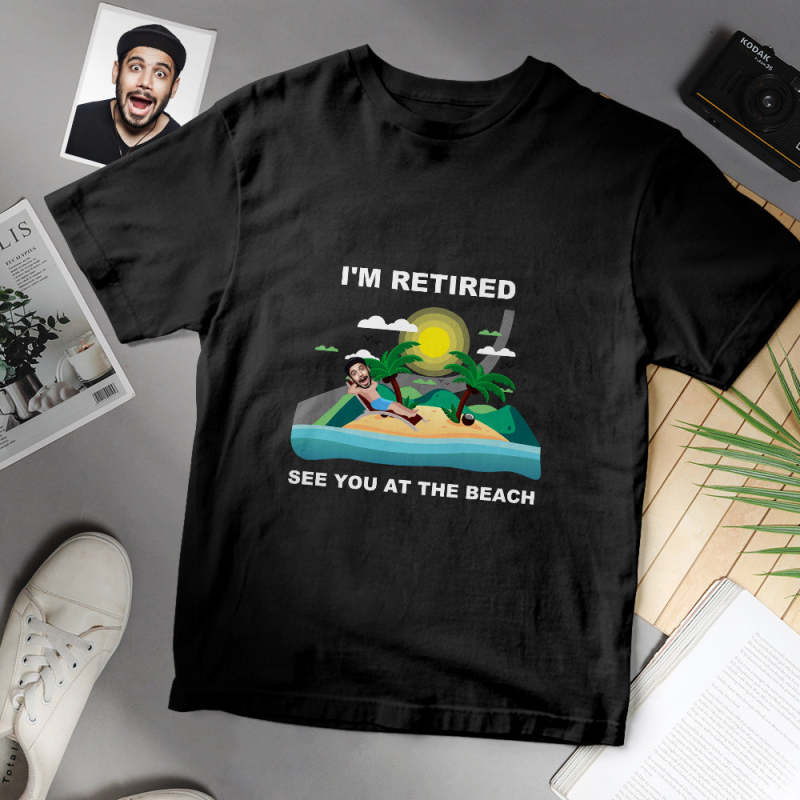 Zet uw foto op een gepersonaliseerd T-shirt met foto en cre毛er het perfecte pensioencadeau!
