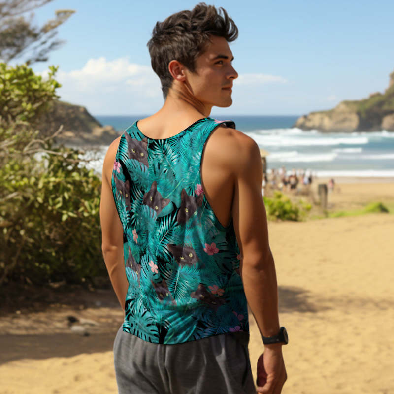 Custom Face Tanktops Mouwloos Shirt Voor Heren Zwart Cat