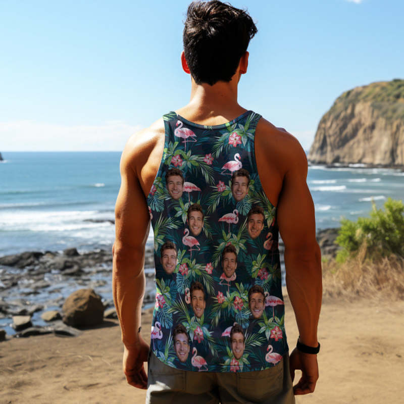 Custom Face Tanktops Heren Mouwloos Shirt Bladeren & Flamingo