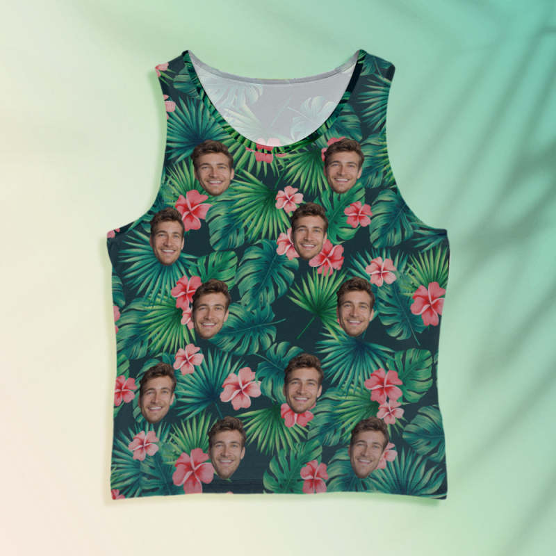 Custom Face Tank Tops Mouwloos Shirt Voor Mannen Rode Bloemen