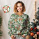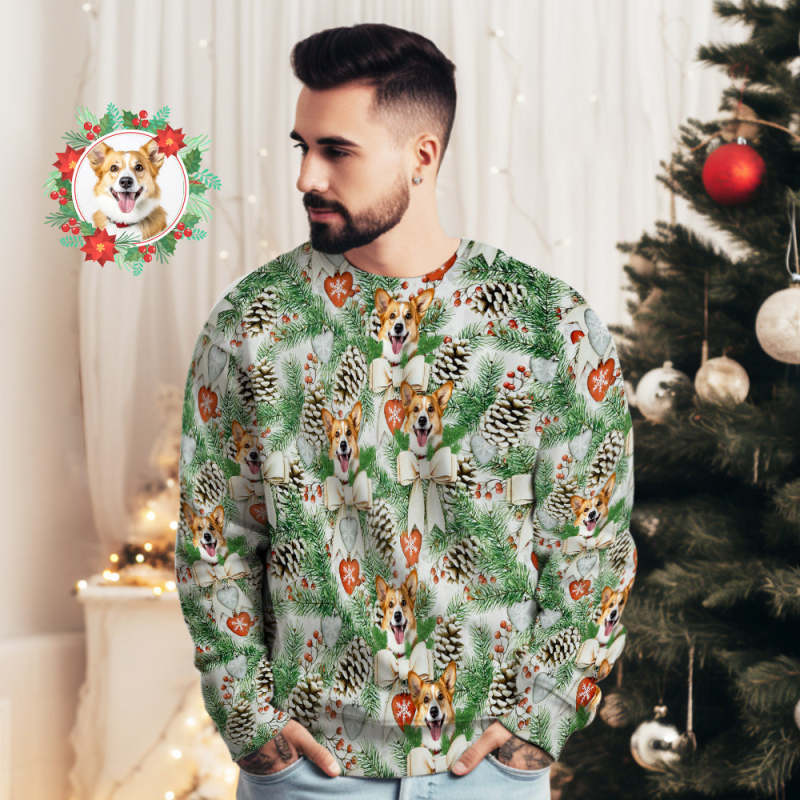 Custom Face Unisex Kerstsweatshirt Casual Bedrukt Grappig Ronde Hals Shirt Met Kerstdennenappel