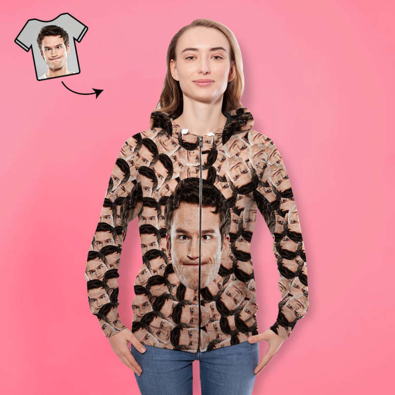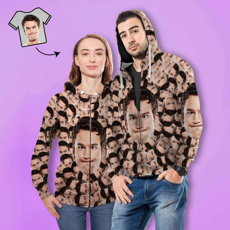 Aangepast Gezicht Uniseks Hoodie Gewoontjes Afgedrukte Foto Hoodie Met Rits Voor Mannen Vrouwen - Groot Gezicht