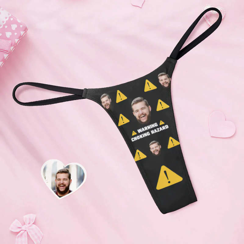 Custom Face Women's Tanga String Verstikkingsgevaar Waarschuwing Valentijnsdag Cadeau