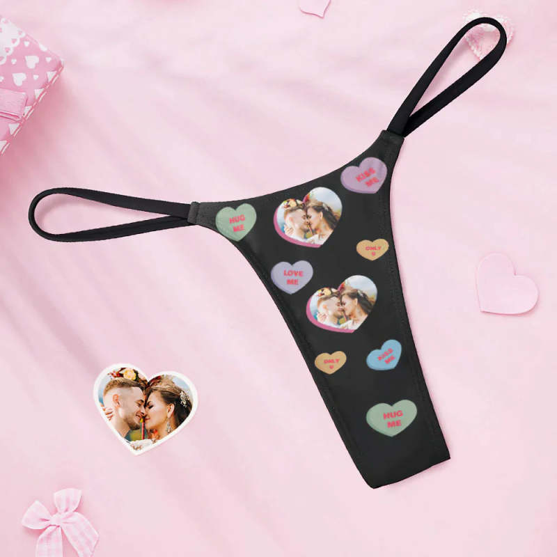Custom Face Women's Tanga String Conversation Hearts Gepersonaliseerde Valentijnsdag Strings