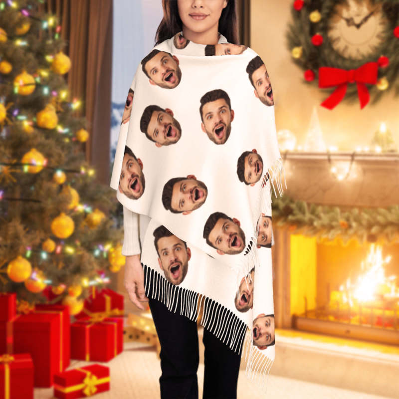 Aangepaste Grappige Sjaal Gepersonaliseerd Gezicht Unisex Zachte Warme Franje Sjaal Omslagdoek Cadeau Voor De Winter