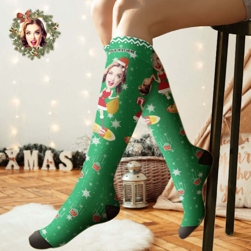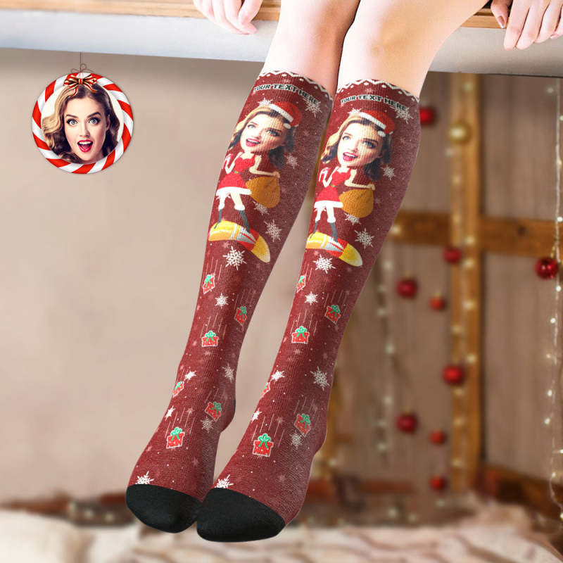Aangepaste Knie Hoge Sokken Gepersonaliseerde Gezicht Kerstsokken Pinup Meisje
