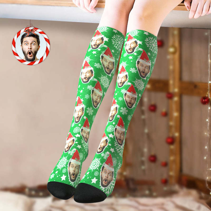 Aangepaste Kniekousen Gepersonaliseerde Face Christmas Socks Snowflake