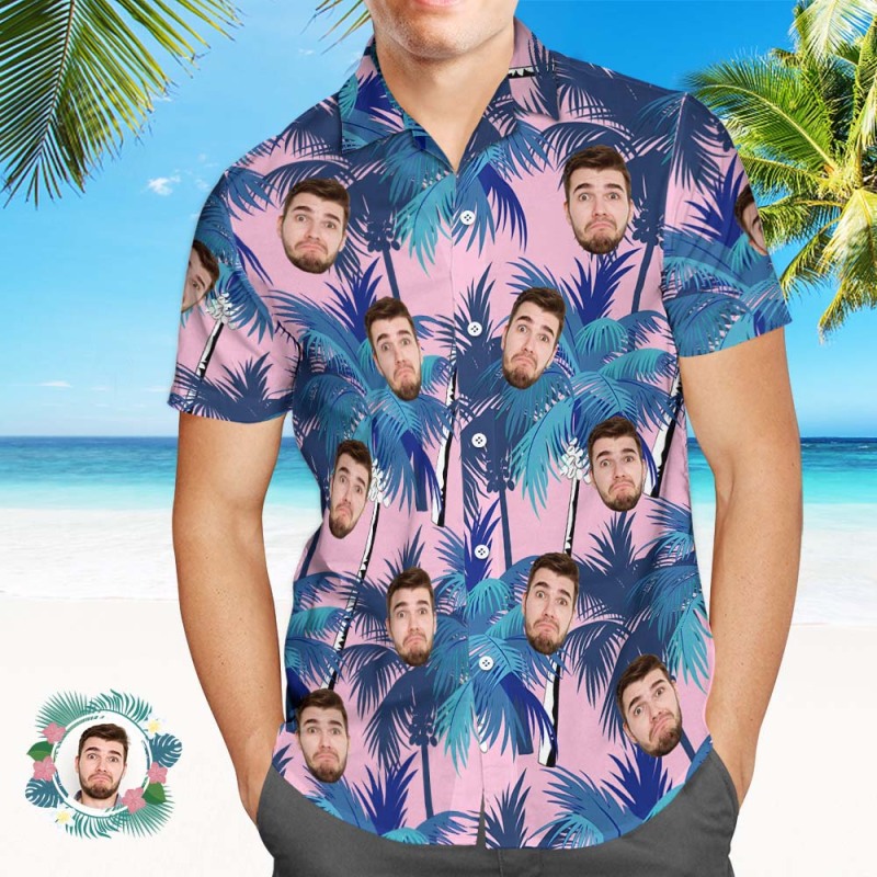 Aangepaste Heren Gezicht Vakantie Kokospalm Hawaiiaans Shirt Gezicht Hawaiiaans Shirt