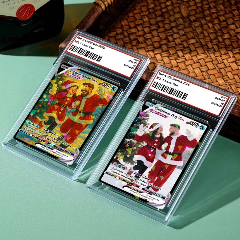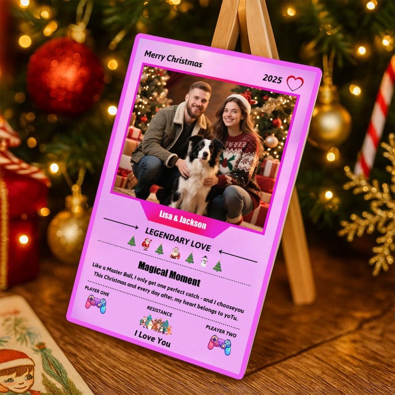 Gepersonaliseerde Merry Christmas-ruilkaart Als Cadeau Voor Je Geliefde. Verander Je Foto In Een Uniek Verzamelobject In Pixel Man-stijl. Kerstcadeau-idee.