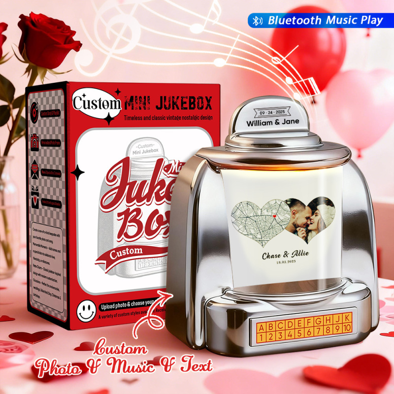 Gepersonaliseerde Mini-jukebox Met Hartjes Als Liefdesherinnering – Mini Bluetooth-jukebox Met Foto, Tekst En Speciaal Ontwerp