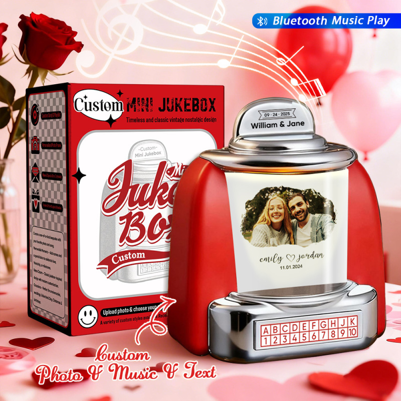 Gepersonaliseerde Mini-jukebox Met Foto En Muziek Als Cadeau – Bluetooth-jukebox Met Aangepaste Tekst Voor Stellen, Jubilea En Valentijnsdag