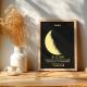 Leer de maanfasen en gepersonaliseerde namen met ons aangepaste houten frame met maanfase en namen. Voer een geboortedatum in om de cyclus van de maan te ervaren en ontdek hoe het is om op de maan te leven. Met acht verschillende fasen en aanpasbare tekst is dit frame een educatieve en unieke toevoeging aan de collectie van elke ruimteliefhebber.