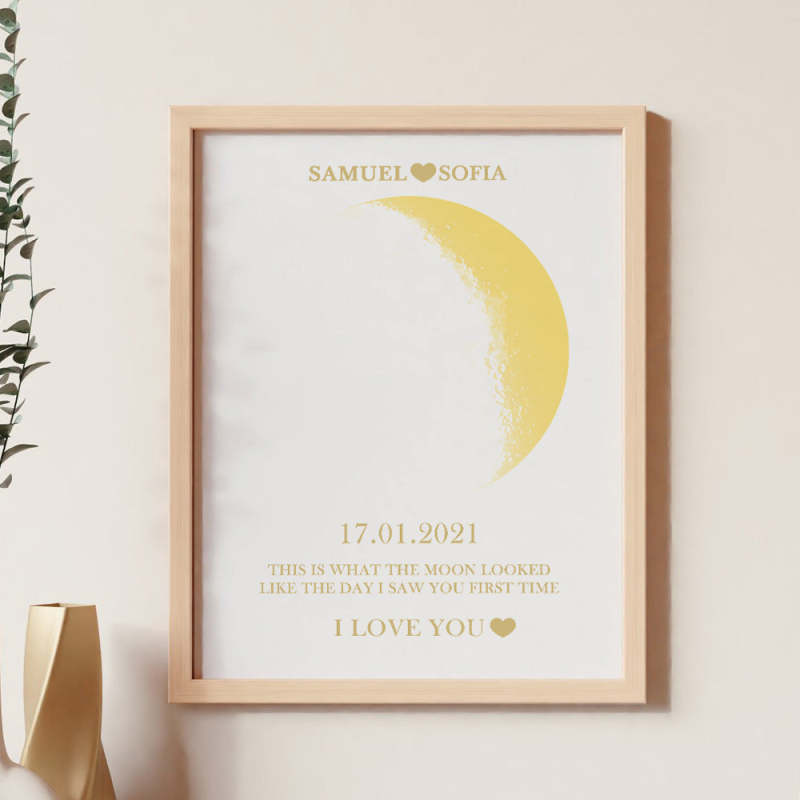 Leer de maanfasen en gepersonaliseerde namen met ons aangepaste houten frame voor maanfasen en namen. Voer een geboortedatum in om de cyclus van de maan te ervaren en ontdek hoe het is om op de maan te leven. Met acht verschillende fasen en aanpasbare tekst is dit frame een educatieve en unieke toevoeging aan de collectie van elke ruimteliefhebber.